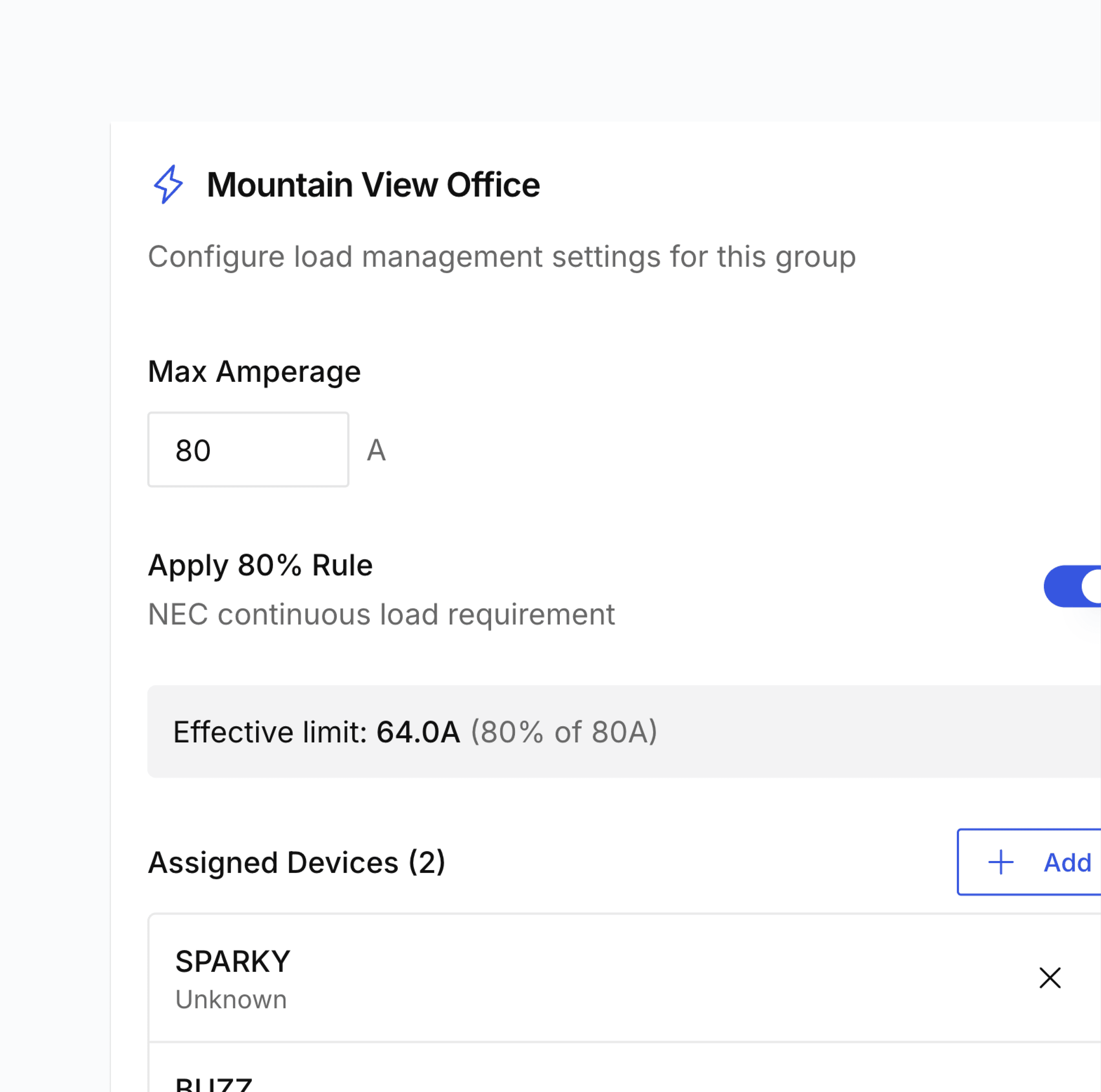Configure charging schedules, load limits, and optimization rules to match fleet operations.