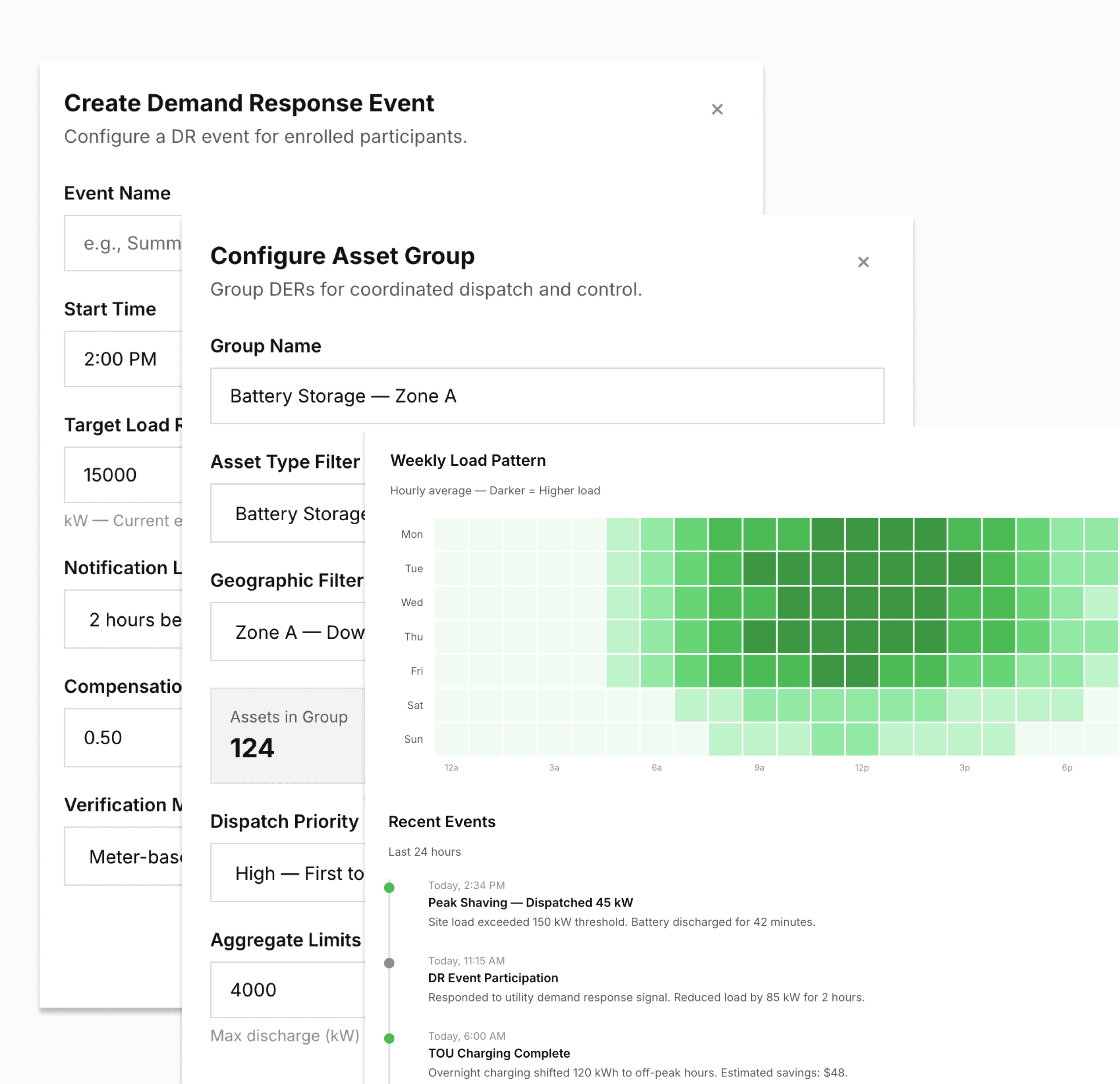 Dispatch signals, curtailment commands, and demand response instructions can be issued to DERs through a unified control interface. Devices respond consistently regardless of manufacturer or protocol. Utilities can call on distributed capacity for load management, frequency response, or emergency curtailment.